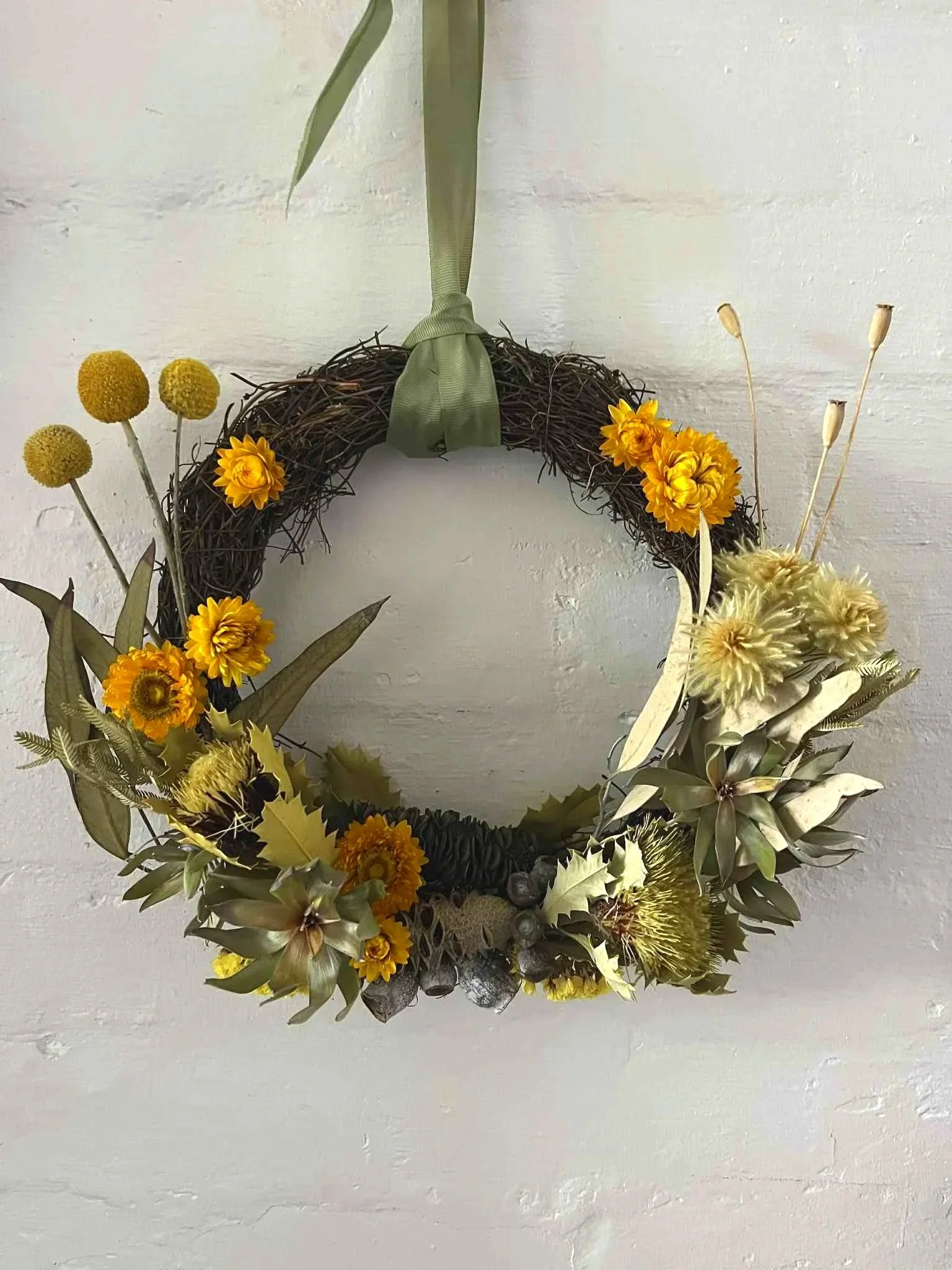 All wreaths will be ready for pick up or delivered across late October and November so they’re ready to hang on your front door from